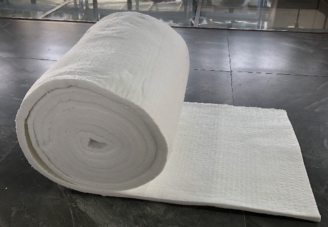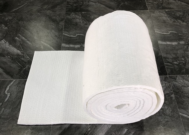 含鋯陶瓷纖維毯其主要原料是硬質黏土熟料、焦寶石、氧化鋁硅石粉、二氧化鋯等,通過將原料高溫熔融,然后通過噴吹甩絲制成纖維,再由甩絲成纖工藝制成纖維棉,經過針刺、熱定型、縱橫切、打卷制成含鋯陶瓷纖維毯。